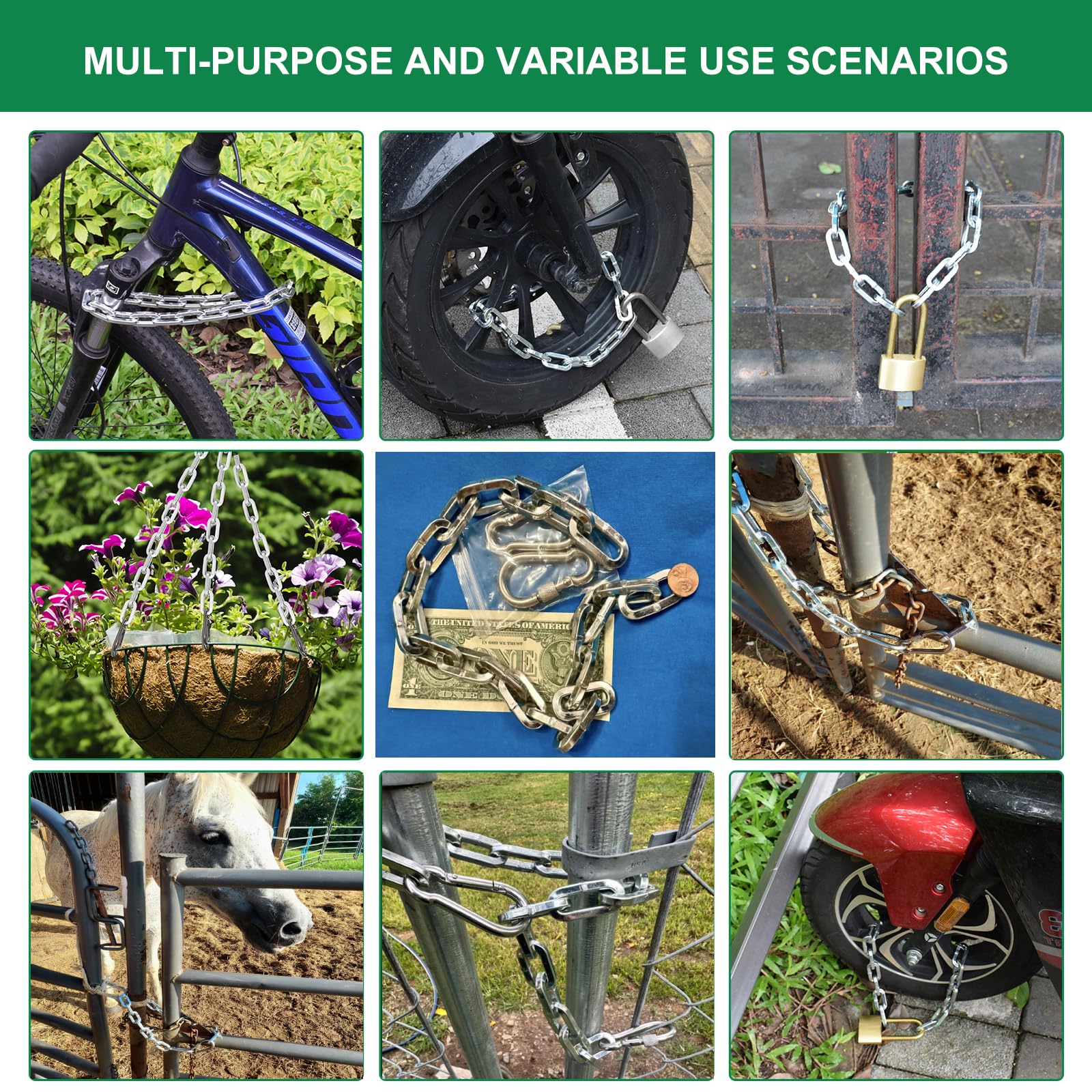 - ✓ ALL-WEATHER DURABILITY: A outdoor gate security chain surface plating with eco-friendly white zinc can effectively prevent oxidation and corrosion rust. Built to withstand outdoor elements, this chain is suitable for use in any weather condition, providing reliable security year-round.