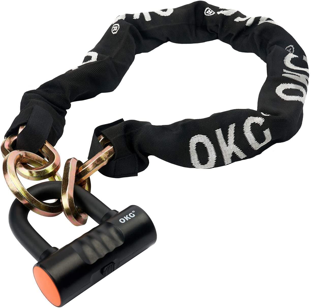 OKG Ultra Security Motorcycle Chain Lock, 4 Keys, 13lbs, 5 ft x 1/2in (12mm) Thick Lock Chain Heavy Duty Chain Lock, High Security Cut Proof Chain and Anti Theft U Lock
